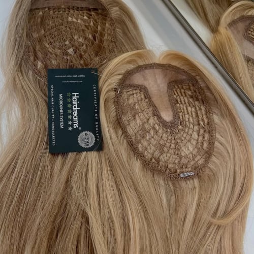 - 7‑Sterne Haare werden bei Hairdreams Haar für Haar nach Qualität und Farbe sortiert und man verzichtet auf chemisches Färben. Nach der manuellen Sortierung werden die Haare nur noch minimal, maximal um eine Tonhöhe, an die Hairdreams-Farbskala angepasst. Blond bleibt blond, rot bleibt rot. Das macht sie besonders langlebig und edel im Fall.